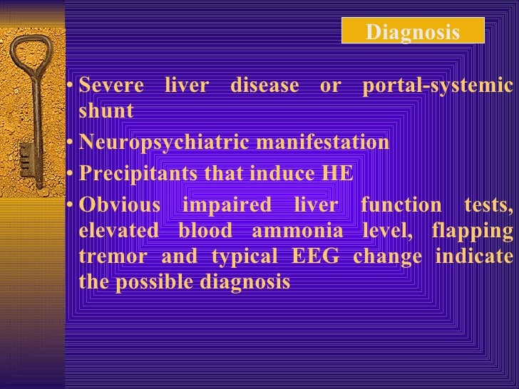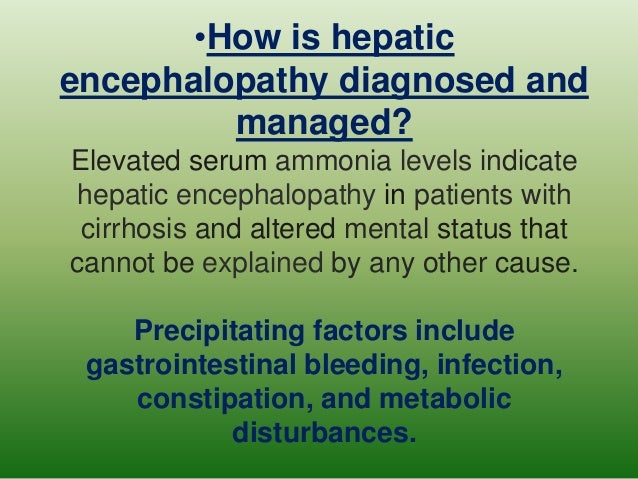 That cause blood ammonia levels to become elevated may be present. HA is considered a key factor in HE, which is defined as a spectrum of neuropsychiatric abnormalities in patients with liver dysfunction, after other known brain disease has been ... Return Document